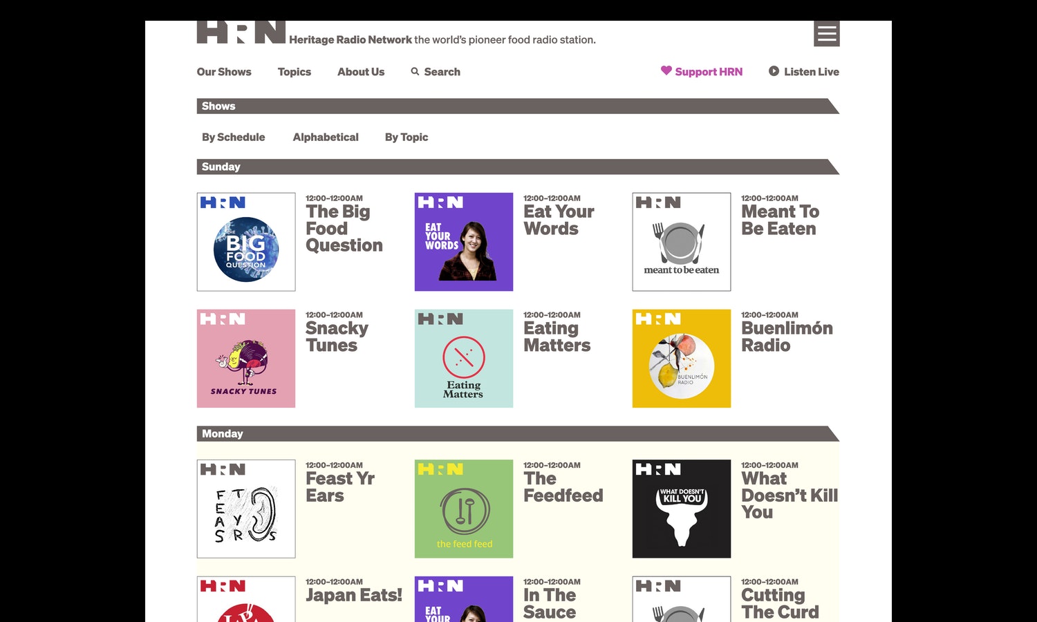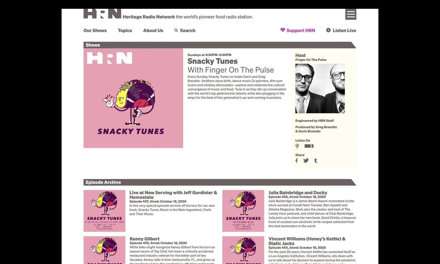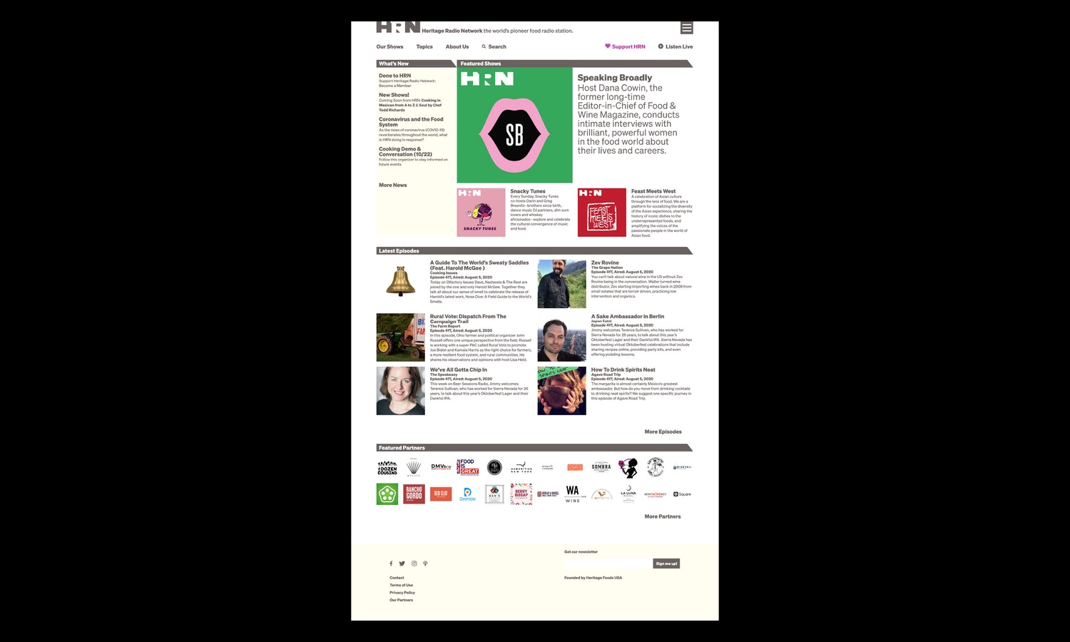 遺產(chǎn)無線電網(wǎng)絡(luò)(HRN)是世界上首屈一指的食品廣播電臺。非營利性播客網(wǎng)絡(luò)每周播出40場與食品相關(guān)的節(jié)目,涵蓋從可持續(xù)農(nóng)業(yè)、食品技術(shù)和全球食品供應(yīng)到家庭烹飪、個人營養(yǎng)和健康、以及餐館和餐飲等各個方面。HRN啟用了一個新的品牌標(biāo)志設(shè)計和網(wǎng)站,幫助提高其知名度,并為其編程提供了一個具有凝聚力的視覺形象設(shè)計。HRN成立于2009年,受慢速食品運動的啟發(fā),在著名餐廳后院的兩個回收集裝箱中運作。羅伯塔比薩在布魯克林。該網(wǎng)絡(luò)的節(jié)目可以通過Sticher、Apple播客和其他平臺訪問,也可以在自己的網(wǎng)站上訪問,該網(wǎng)站擁有超過1.5萬集的庫。HRN需要一個身份,使它能夠在品牌形象上“擁有”跨越不同平臺的播客,同時允許單個程序發(fā)光發(fā)熱。