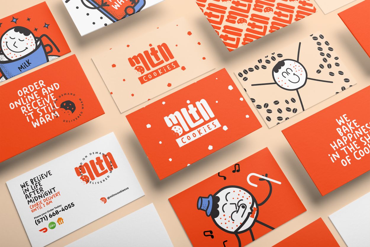 Cookie送貨業(yè)務(wù)品牌形象設(shè)計(jì)賞析:考慮到這一點(diǎn),我們決定開發(fā)一個(gè)以插圖為導(dǎo)向的品牌項(xiàng)目。在這些類型的項(xiàng)目中,插圖和輔助圖形負(fù)責(zé)傳達(dá)品牌的理念和感受。在這種情況下,我們想要一個(gè)易于接受、友好和經(jīng)典的品牌。我想給這個(gè)品牌一個(gè)經(jīng)典的基調(diào),但把它留在非常現(xiàn)代的應(yīng)用程序中。為此,我們?cè)谂c品牌及其提案相關(guān)的幾個(gè)動(dòng)作中展示了一個(gè)代表 cookie 的IP角色設(shè)計(jì)。經(jīng)典設(shè)計(jì)風(fēng)格是當(dāng)今品牌的趨勢(shì),甚至出現(xiàn)在他們的情緒板上。所以我相信這是正確的選擇。
