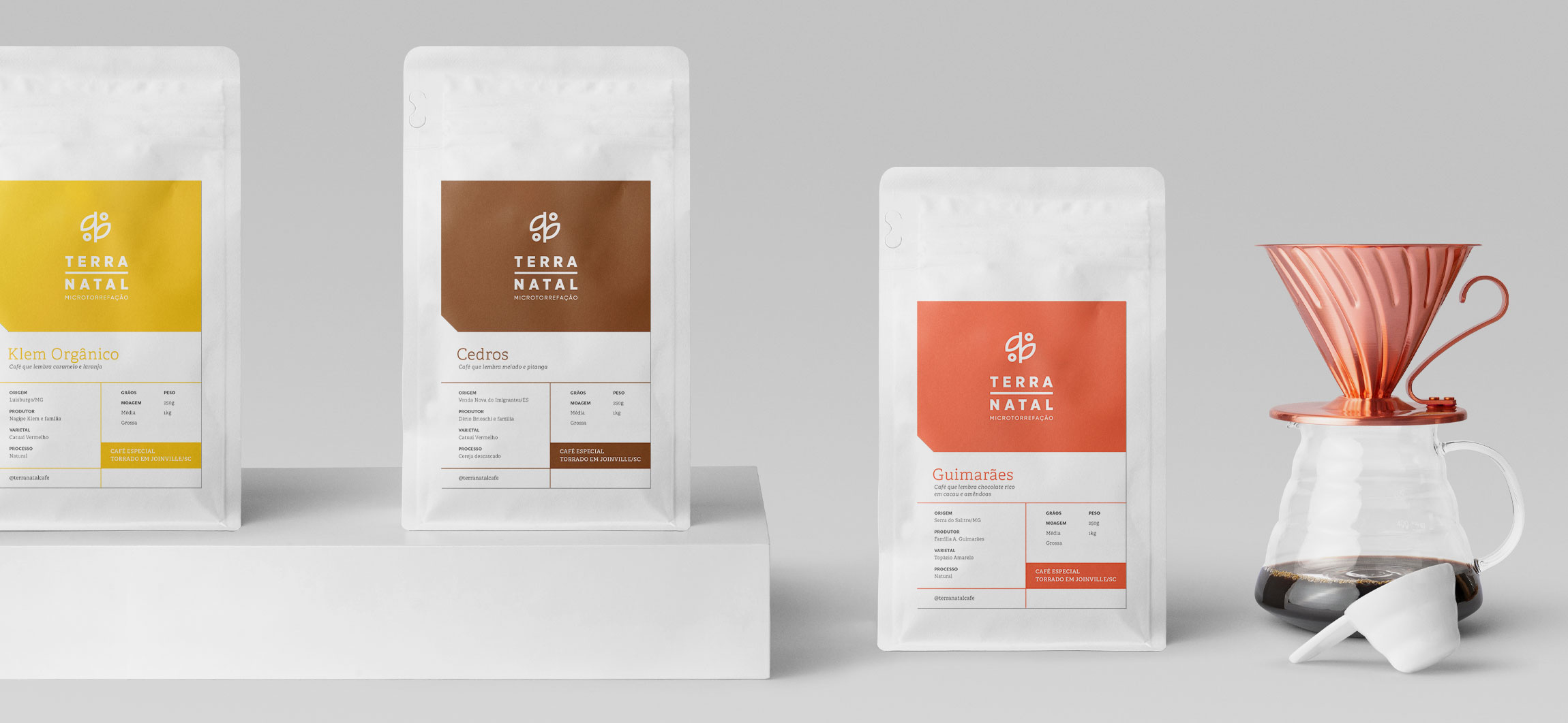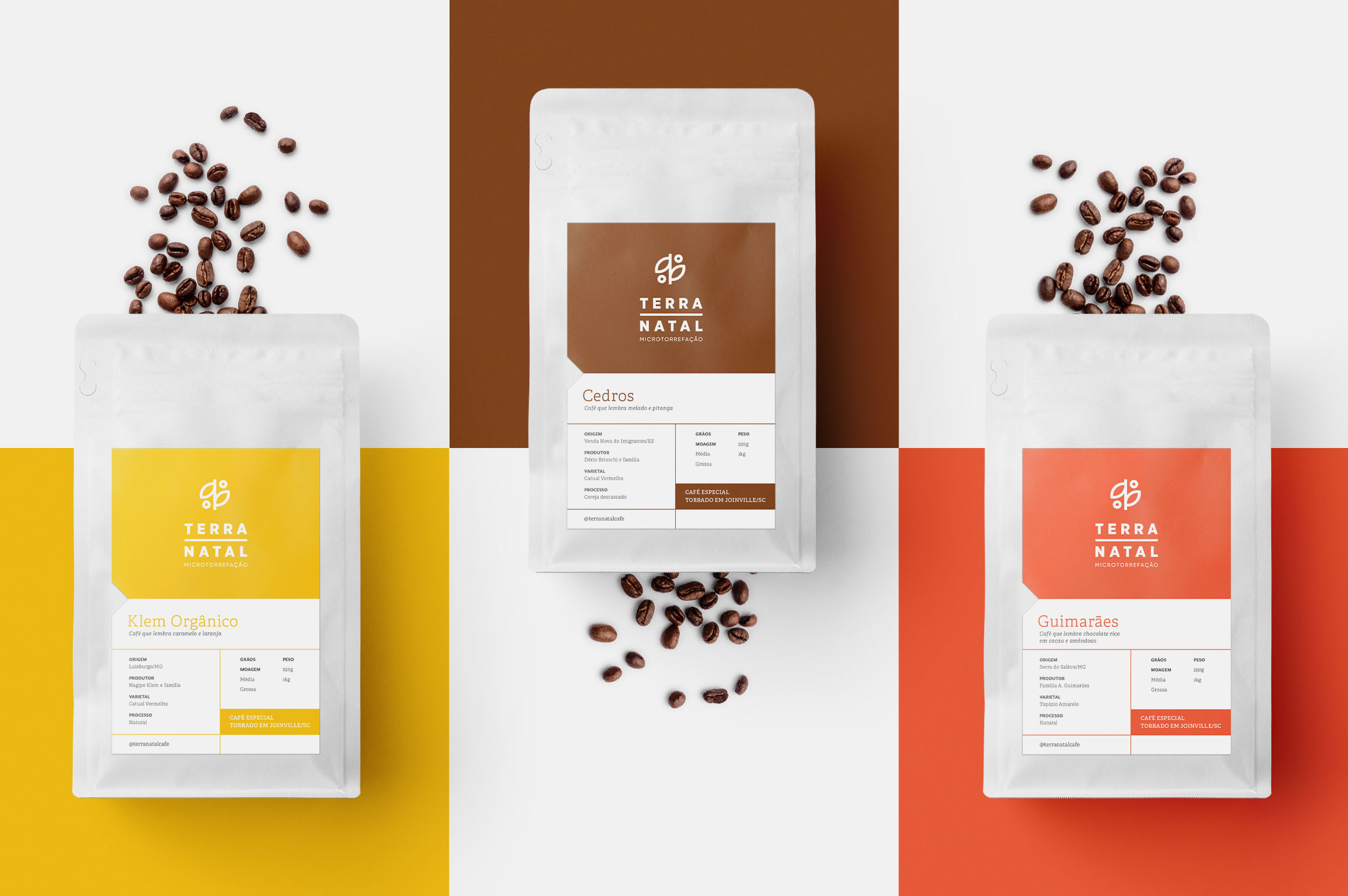 Terra Natal Coffee Roasters 特殊咖啡的包裝設(shè)計(jì)項(xiàng)目專注于對品牌產(chǎn)生更直接的視覺識別,對產(chǎn)品線進(jìn)行分類,向消費(fèi)者傳達(dá)感官特征并優(yōu)化生產(chǎn)流程。