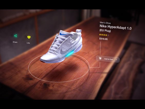 AR設(shè)計趨勢的應(yīng)用非常廣泛。例如,當(dāng)我們在線購買運動鞋時,通過現(xiàn)場“試穿”功能感受效果。通過AR技術(shù),我們可以將不同款式的鞋子疊加在腳上,模擬現(xiàn)實空間中傳上鞋子的樣子,通過照片來體驗外觀。
