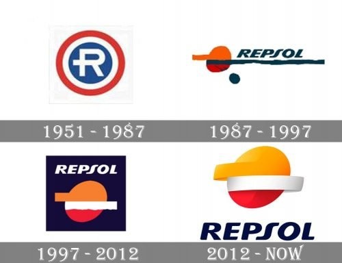 該品牌的根源可以追溯到 1951 年,當(dāng)時 REPESA (Refineríade Petróleos de Escombreras SA) 推出了名為 Repsol 的潤滑油系列。最初的 Repsol 標(biāo)志設(shè)計在藍(lán)色圓圈內(nèi)帶有一個大的白色“R”。藍(lán)色圓圈又被放置在白色和紅色環(huán)內(nèi)。